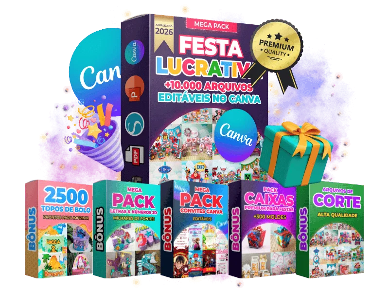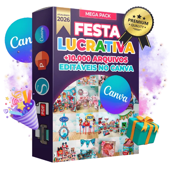 ✅ Mega Pack Festa Lucrativa — +10.000 arquivos Editáveis no Canva