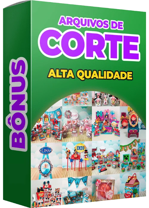 Pacote completo com arquivos de corte prontos para personalizar suas festas e lembrancinhas. Moldes testados e prontos para uso com acabamento perfeito!